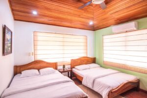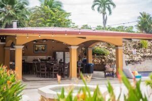 Casa Cielo Azul was built with entertaining in mind, centered around a private pool and a spacious covered rancho for gatherings. The rancho is fully equipped with a fridge, gas BBQ grill, sink, half bathroom, sound system, bar seating, and a large dining table for group meals and celebrations. Surrounding the pool are five private condos, giving guests the perfect balance of privacy and community while still staying connected to the action. Each bedroom comes with air conditioning for comfort after a day of fun in the sun. The layout makes Casa Cielo Azul ideal for both lively parties and relaxing downtime, ensuring your group has everything they need in one place. With its unbeatable location and thoughtful design, this villa is one of Jaco’s most sought-after spots for large groups looking to enjoy the best of Costa Rica’s nightlife and beaches.