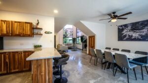 Casa Toucan is only 50 steps from the community pool and 100 steps from the beach, making it easy to enjoy the best of Costa Rica’s coastline. Inside, the home offers a seamless blend of modern style and tropical flair, with brand-new appliances, an open-concept kitchen, and spacious living and dining areas designed for gathering. The bedrooms are comfortably appointed, each with thoughtful touches that ensure a restful stay after a day of adventure. A large private patio provides the perfect setting for outdoor meals, morning coffee, or relaxing evenings under the stars. With 24/7 gated security and the option of personal concierge services, guests can enjoy peace of mind along with complete convenience. Casa Toucan combines location, design, and functionality to create the ultimate beachside getaway for small groups.