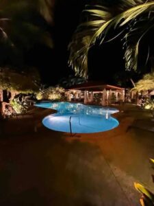 As far as the facility itself, you feel like you’re in a villa. The rooms are clean with TV and strong A/C all surrounding the hot tub and pool (which are are cleaned daily). You walk into the main building and there’s a fully stocked kitchen, gas stove and dining area. We played pool and foosball sat on the patio played games! They have a huge grill so we took one night to grill out and have a family style dinner. It’s very conveniently located, being minutes to downtown and all the food, bars, clubs, etc. Whatever you’re looking for you can find it and pay maybe 3$ for a Uber.
