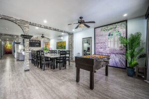 As far as the facility itself, you feel like you’re in a villa. The rooms are clean with TV and strong A/C all surrounding the hot tub and pool (which are are cleaned daily). You walk into the main building and there’s a fully stocked kitchen, gas stove and dining area. We played pool and foosball sat on the patio played games! They have a huge grill so we took one night to grill out and have a family style dinner. It’s very conveniently located, being minutes to downtown and all the food, bars, clubs, etc. Whatever you’re looking for you can find it and pay maybe 3$ for a Uber.