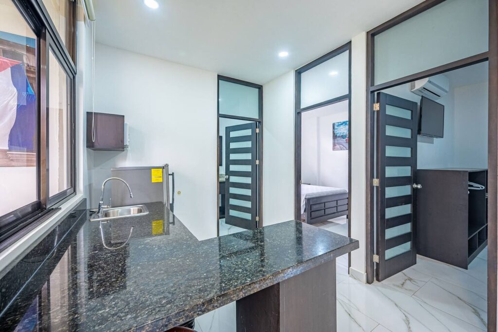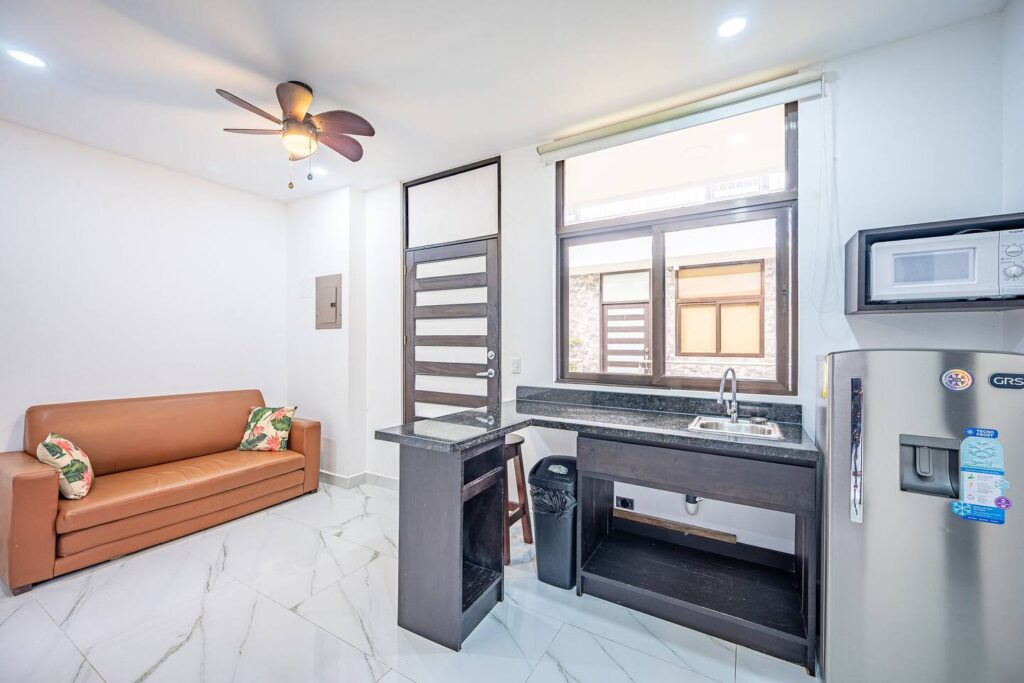 The second floor features 9 private bedrooms. All with ensuite bathrooms. Each room has its own mini kitchen/casita with fridge — perfect for convenience and extended stays.