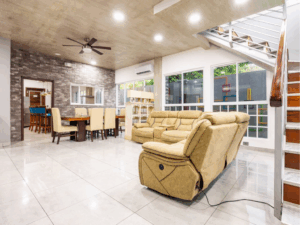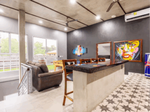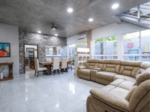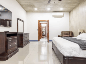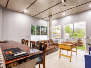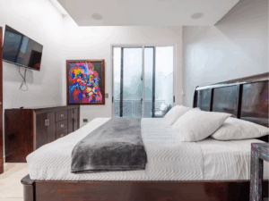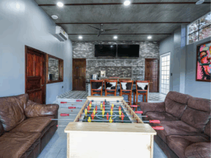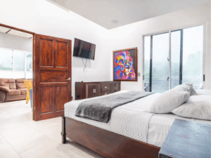 Kings Casa Jupiter is the ultimate group vacation home in Jaco, Costa Rica—blending sleek modern design with tropical charm. This pet-friendly retreat was built for travelers who want both luxury and laid-back vibes, making it perfect for family reunions, celebrations, or getaways with friends. With elegant wood and stone finishes, smart lighting, and high-end furnishings, every corner of Casa Jupiter has been carefully designed for comfort. Guests can lounge by the private swimming pool, relax on the terrace with sweeping mountain views, or retreat to beautifully styled bedrooms, each with air conditioning and 4K TVs.