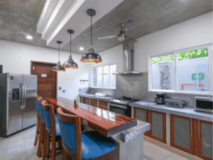 Kings Casa Jupiter offers spacious indoor and outdoor living areas designed for gathering, entertaining, and memory-making. The villa features multiple balconies with scenic views, a full bar for group celebrations, and a garage for added convenience. The open design connects the kitchen, dining, and lounge areas seamlessly to the outdoor pool and terrace, creating the perfect blend of social spaces and relaxation zones. Guests will love waking up to the sounds of nature, with chances to spot monkeys, toucans, and other local wildlife right from the property. For those looking to elevate their stay, Casa Jupiter also offers a curated wine selection available for purchase. Whether you’re planning a lively event or a peaceful retreat with your crew (pets included), this luxury villa provides the perfect setting for an unforgettable Costa Rica vacation.