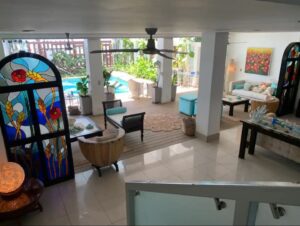 Casa Paraiso features 6 bedrooms, 8 beds, and 7 bathrooms, comfortably accommodating large families or groups of friends. The interiors are bright and airy, decorated with unique artwork and spacious common areas that make gathering easy and enjoyable. A fully equipped kitchen allows for group meals, while indoor lounge spaces provide comfort after a day of sun and surf. Outdoors, guests can relax by the private pool, enjoy dining al fresco, or unwind while taking in sweeping views of the Pacific Ocean and surrounding jungle. Each bedroom is air-conditioned and designed for both comfort and privacy, ensuring restful nights for every guest. With its unbeatable beachfront location and modern amenities, Casa Paraiso offers everything you need to create lifelong memories in Jaco Beach.