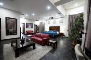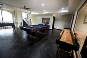 Casa Ponte Mega Estate is packed with first-class amenities to ensure your stay is nothing short of unforgettable. Guests enjoy full-time daily cleaning staff, a private on-site doorman, and a designer gourmet kitchen—perfect for private chef services. The estate includes two freeform swimming pools with a swim-up bar, waterfall, gas BBQ grill, outdoor rancho, and even a water slide with two hours of daily use included. Indoors, the entertainment continues with a pool table, foosball, a sound system, and WiFi throughout. For nightlife, the property features a 600-square-foot private disco and lounge complete with a light show, wet bar, and professional sound system. A fully equipped gym and expanded poolside deck add the finishing touches, making Casa Ponte Mega Estate the ultimate Costa Rican paradise for large groups.