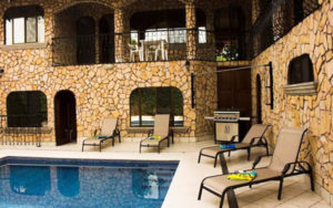Come and vacation at Jaco Beach’s famous party Castle! This private vacation Castle is just a 5-minute walk to the infamous Jaco Party Strip, Cocal Casino and Jaco’s surf beach. Kings Castle is a Huge Private Property with 7-bedrooms and 5 bathrooms. This beautiful Castle has 16 beds with the absolute highest level of comfort, fitting for large groups and parties! Kings Castle has 3 bedrooms on the main floor, and 4 bedrooms on the middle open floor overlooking your private swimming pool and lounge area, perfect for Pool Parties.