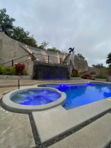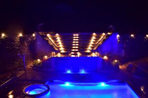 Private pool with waterfalls and hot tubs