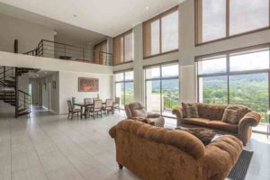 Penthouse #21001 is a luxurious 7-bedroom, 4.5-bath retreat offering some of the best panoramic views in Jaco Beach, Costa Rica. Perfect for multi-family vacations, bachelor or bachelorette parties, reunions, or group adventures, this spacious penthouse delivers both elegance and convenience. With soaring 30-foot ceilings, a dramatic spiral staircase leading to the loft, and wall-to-wall windows framing breathtaking views of the Pacific Ocean and surrounding mountains, every detail has been designed to impress. Just minutes from downtown Jaco and the beach, this penthouse is your private haven with access to all the excitement of town right at your fingertips.