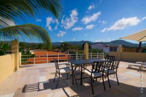 Large terrace with views of the mountains, ideal for watching the sunset and creating great memories; it has a large private pool with a Spa and a gas/charcoal BBQ, according to your preference.