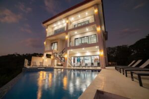 Kings Maverick blends timeless design with modern amenities across a spacious layout built for entertaining. With 7 bedrooms and accommodations for up to 20 guests, the villa ensures comfort and privacy with each room offering an en-suite bathroom. Two full kitchens provide flexibility for group meals or private chef services, while the open living and dining spaces showcase panoramic views through floor-to-ceiling windows. Outdoors, the terraces and lounging areas invite guests to enjoy ocean breezes, unforgettable sunsets, and time together in style. Every detail has been thoughtfully designed to create a luxurious retreat where families and friends can relax, celebrate, and experience Costa Rica’s beauty from one of its most prestigious resort communities.