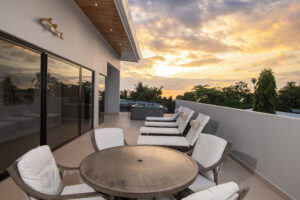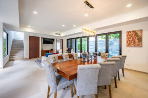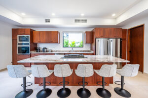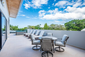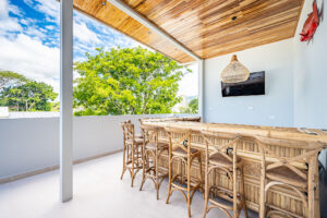 Kings Luxury Beach Villa #1 offers over 5,000 square feet of modern elegance, highlighted by a panoramic third-floor rooftop terrace with sweeping views of the Pacific Ocean. The villa features 7 spacious bedrooms, 8 bathrooms, 5 king beds, 4 queen beds, a private pool, and an open-concept living area that seamlessly connects to the kitchen and lounge. Designed with luxury in mind, it boasts locally crafted furnishings, granite countertops, stainless steel appliances, contemporary décor, and Costa Rican artwork. Ideal for weddings, bachelor parties, family reunions, church retreats, or corporate events, this villa comfortably accommodates up to 18 guests with children or 9 adults without kids. Need more space? Additional villas are available within the complex, perfect for larger groups traveling together.